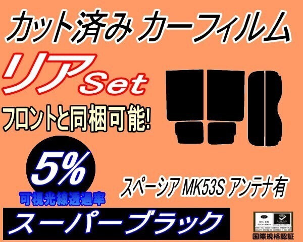 > カーフィルム スーパーブラック カット済み リアセット スペーシア MK53S アンテナ有 (b) スモーク ギア ハイブリッド カスタム リヤセット