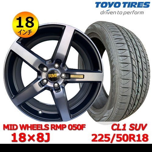- 送料無料 新品タイヤ&ホイール18インチ4セット【MID WHEELS RMP 050F 18×8J+42 114.3×5】【TOYO PROXES CL1 SUV 225/50R18 】MHOT-131