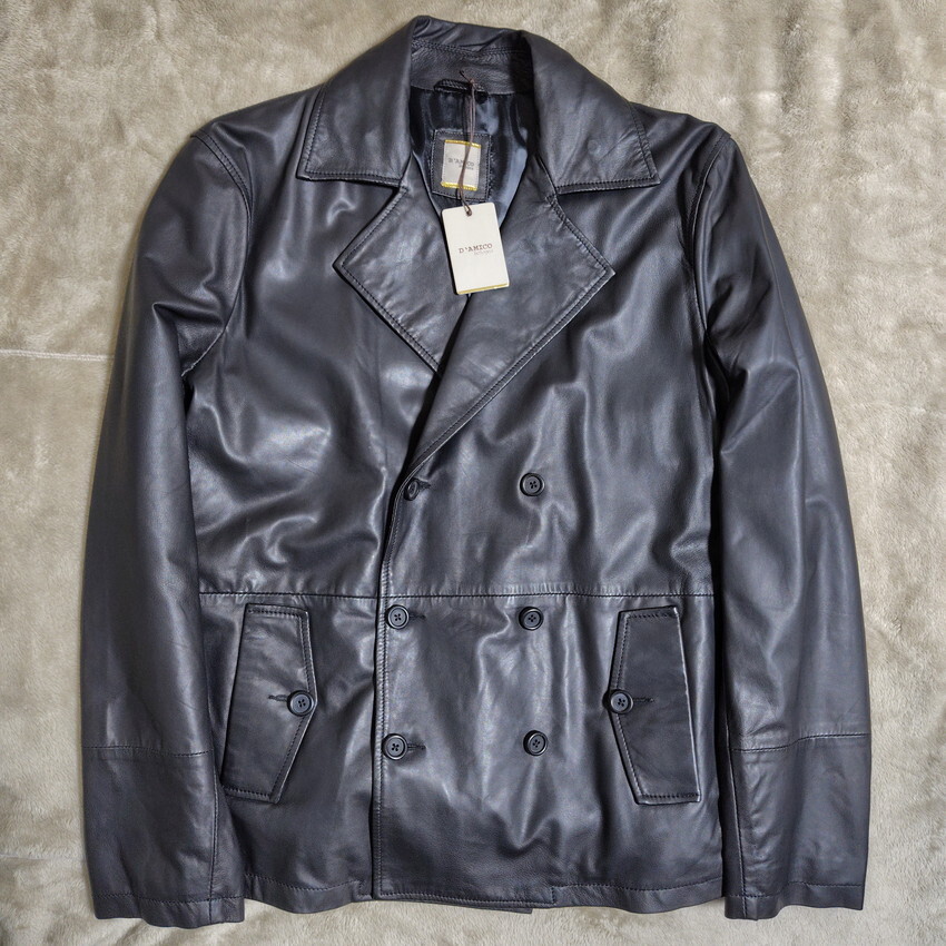 - 新品 Andrea D'AMICO サイズ54 ブラック アンドレアダミコ レザーコート ダブル Pコート レザージャケット Delan デラン EMMETI エンメティ