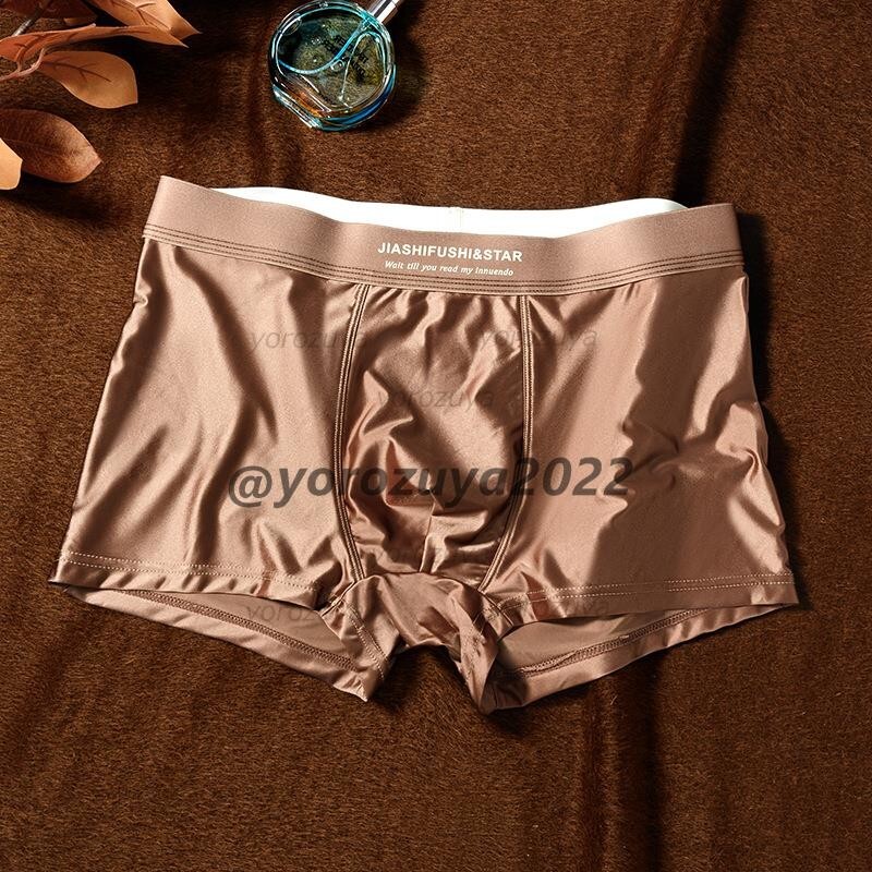 > 184-379-6 極光沢 シルキー メンズ ボクサーパンツ【ブラウン,XLサイズ】男性 下着 インナー アンダーウェア ツヤツヤ ブリーフ パンツ .1