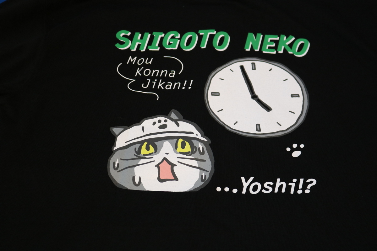 - 仕事猫 YOSHI!? Tシャツ 黒 メンズ 3L バックプリント 大きいサイズ ステッカー付 Shigoto Neko くまみね 新品 未使用