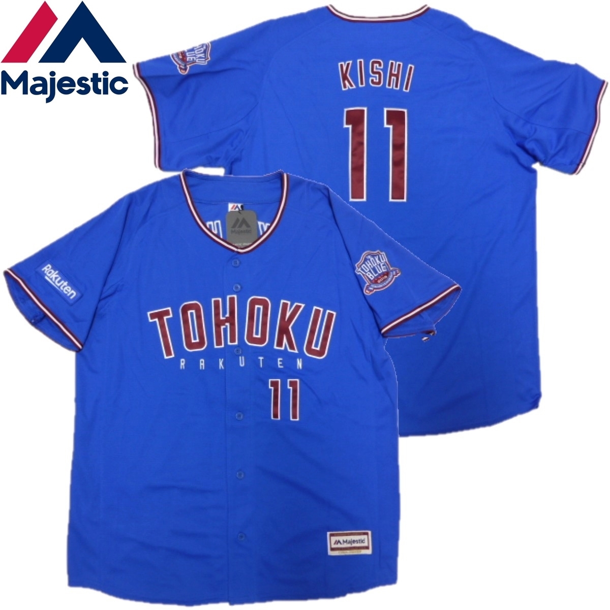> メンズ L 未使用 定価9,000円 マジェスティック 楽天イーグルス レプリカ ユニフォーム TOHOKU BLUE #11 岸 野球 Majestic