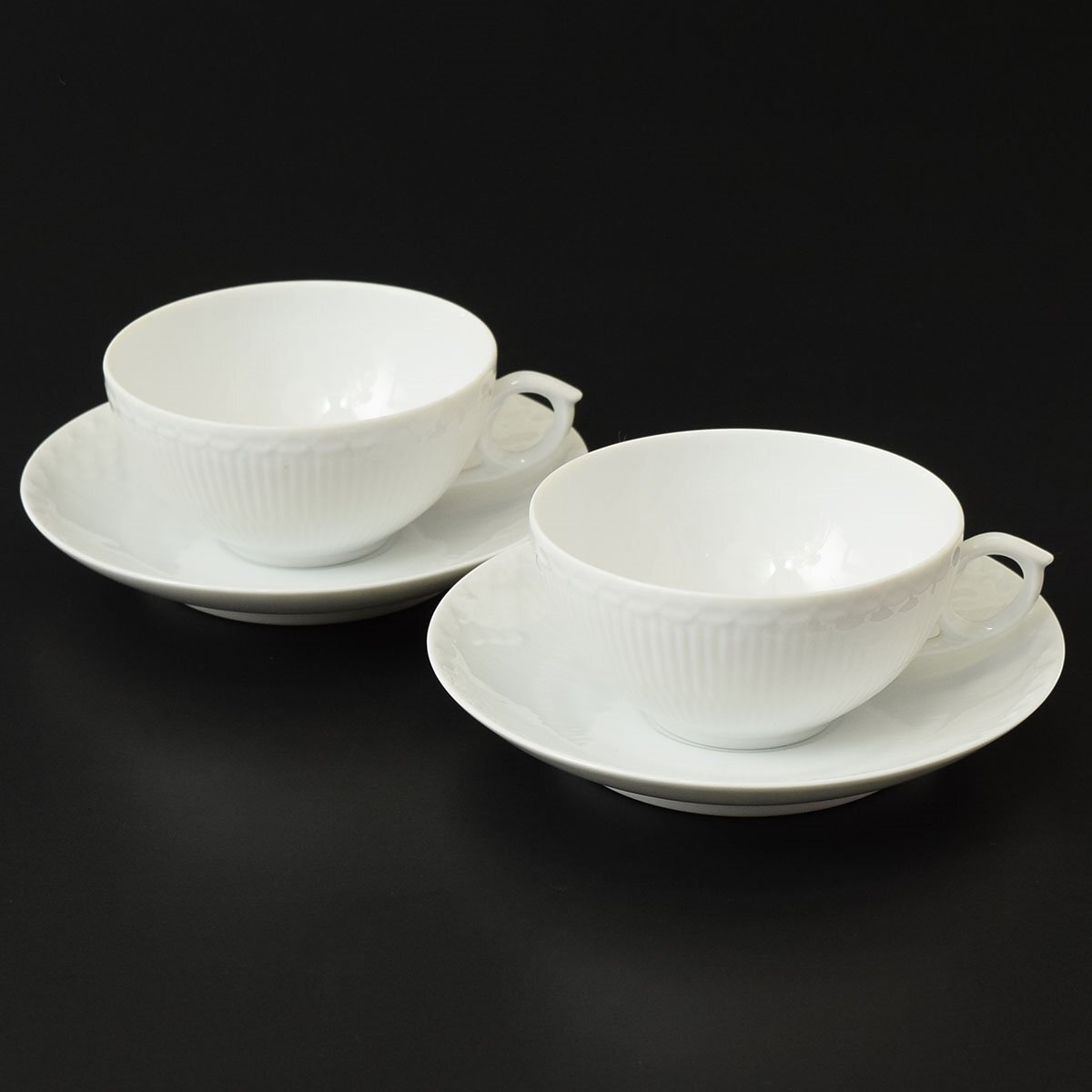 - ◎547180 美品 ROYAL COPENHAGEN ロイヤルコペンハーゲン ホワイトフルーテッド カップ&ソーサー ペア ハーフレース 2客セット