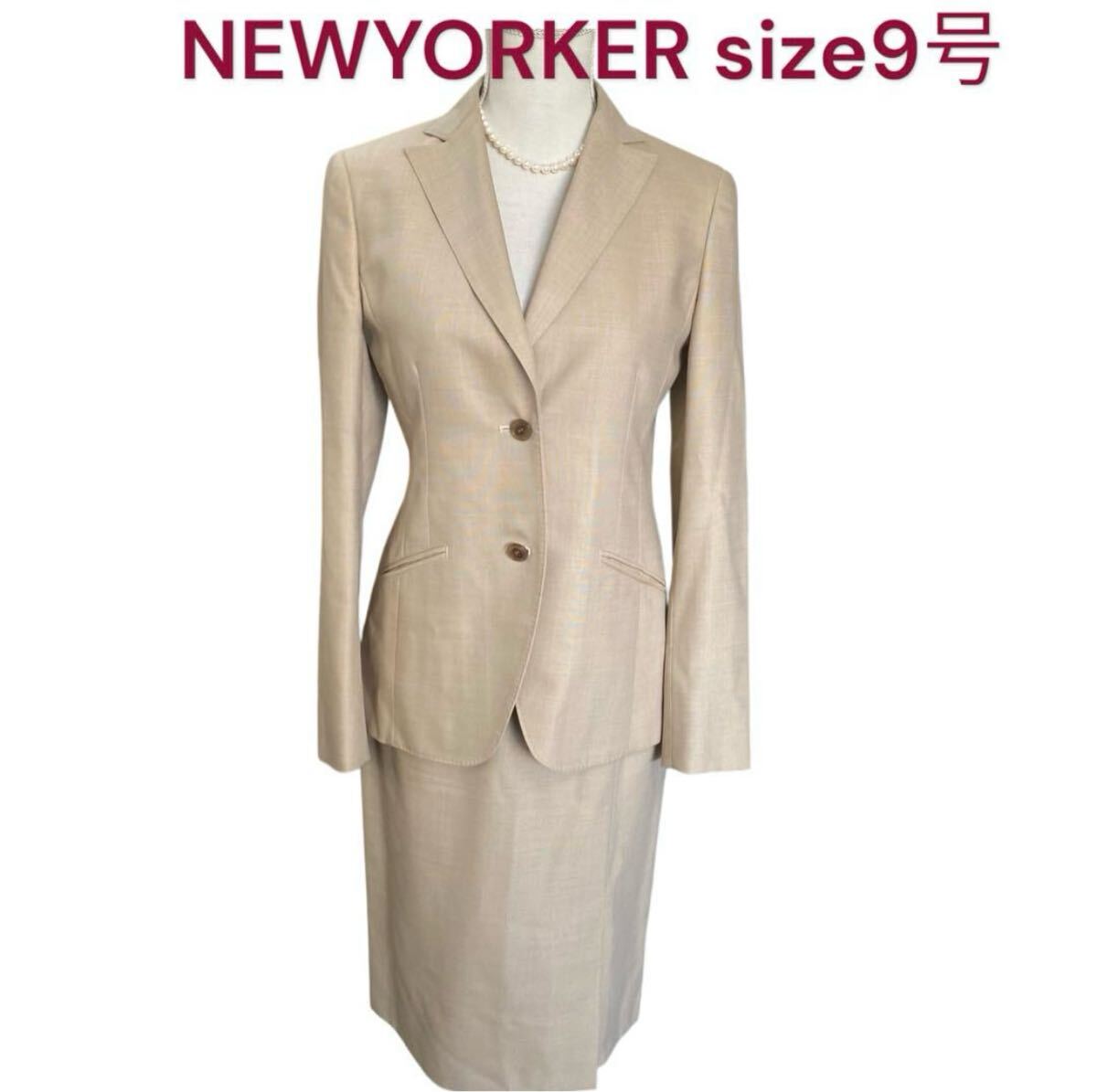 > 極美品 ニューヨーカー 上質ウール、シルク 美シルエット セットアップ スーツ NEWYORKER 9号、M ベージュ