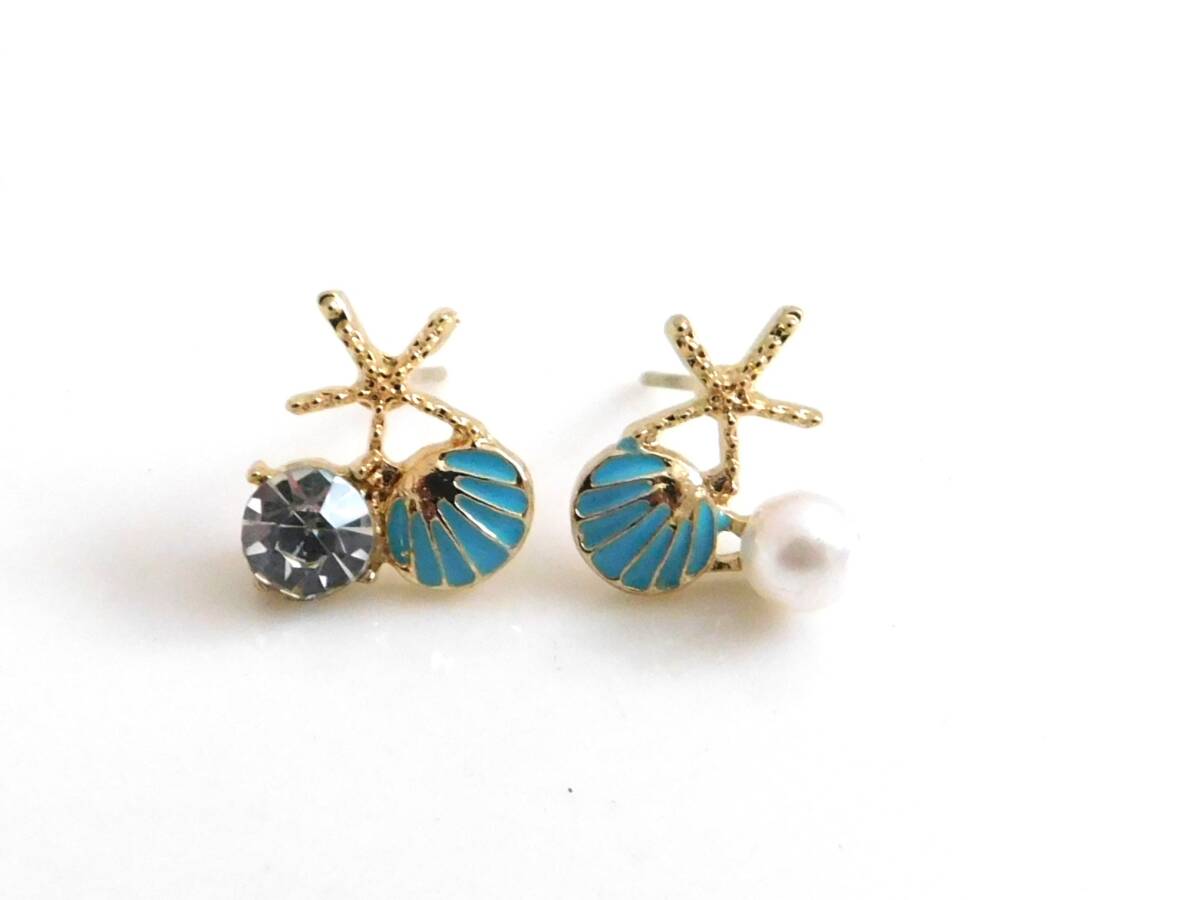 - 【新品】小さなピアス ヒトデ 貝殻 パール 小さな海モチーフのピアス