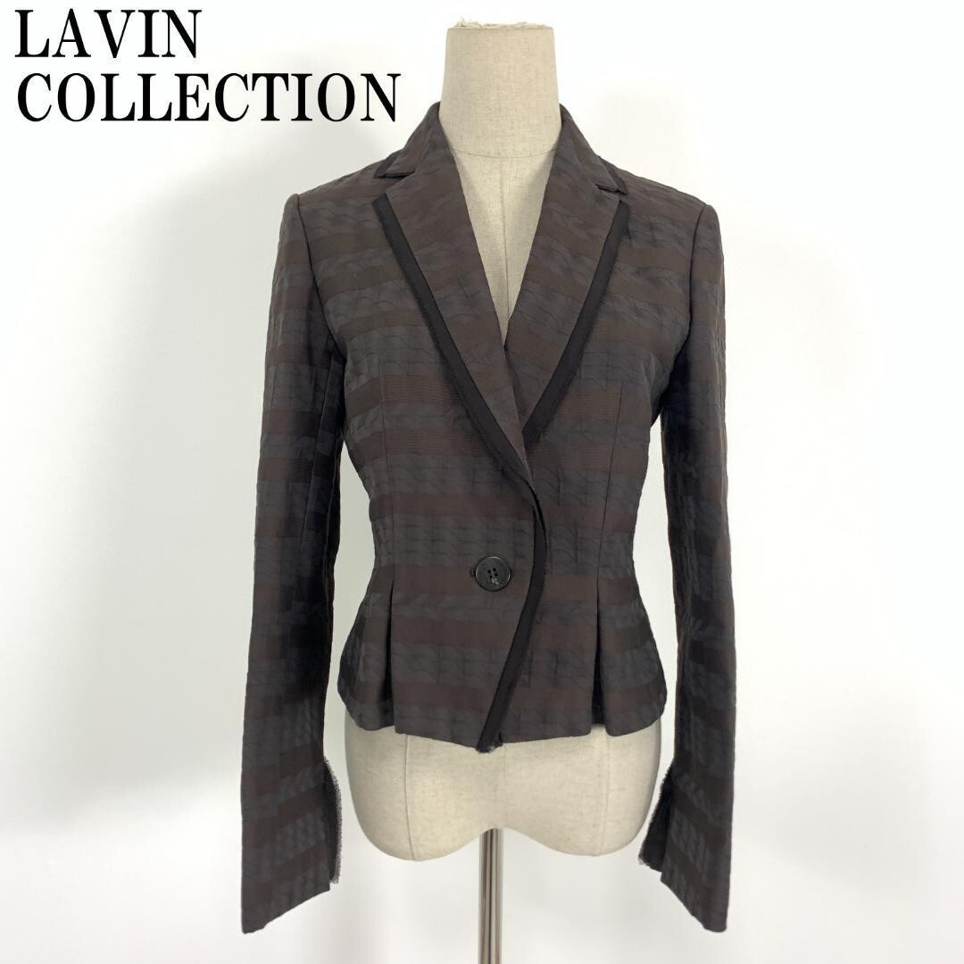 > LA7360 ランバンコレクション LAVIN COLLECTION カジュアル ボーダー ポケット無し コットン テーラードジャケット ブラウン M