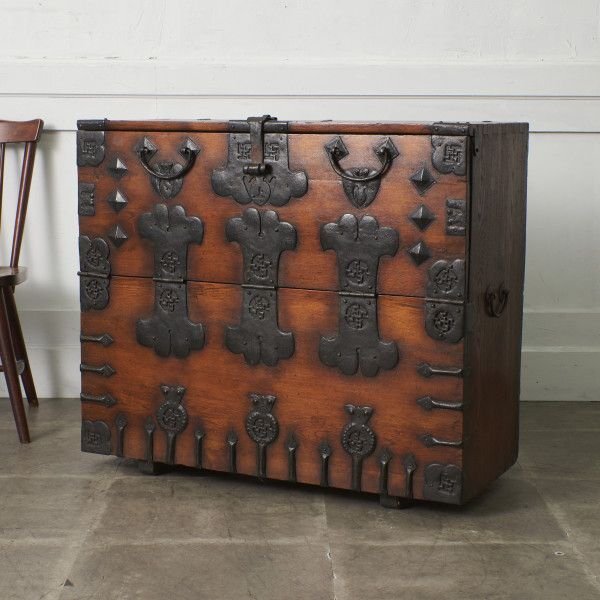 - IZ94877N★李朝家具 無垢材 古鉄金具 半閉櫃 バンダジ 半閉じ箱 時代物 朝鮮 収納箪笥 民芸 タンス キャビネット 韓国 骨董 古玩 古民具