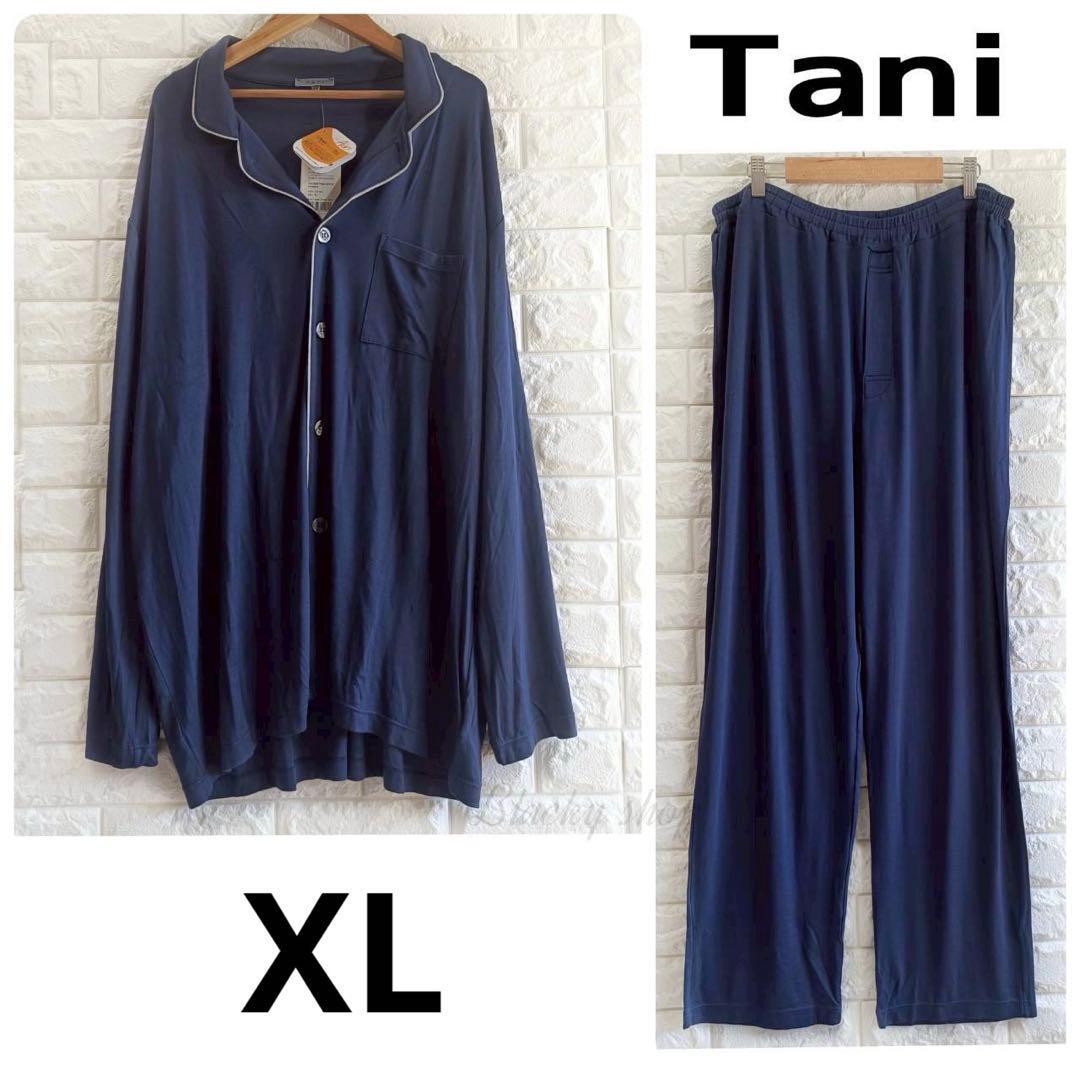 > Tani Silktouch タニ ジャパン シルクタッチ パジャマ セットアップ 未使用 タグ付き ネイビー XL 秋冬 ルームウェア テンセル 長袖 メンズ