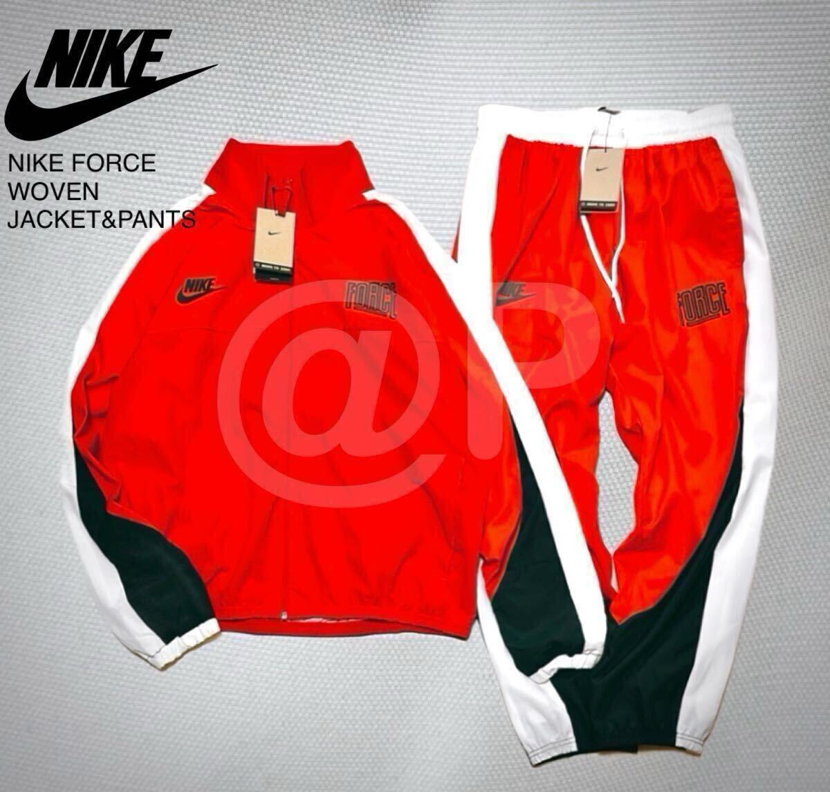 - 新品 NIKE ナイキ ウーブン 上下セット FORCE 薄手 軽量 ナイロン ジャケット パンツ セットアップ [ Lサイズ ] 赤 レッド