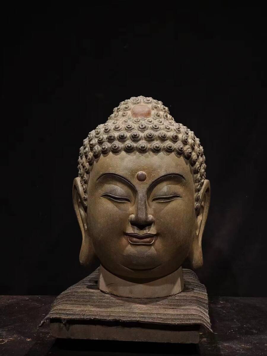 - 明代風 古青石彫 石仏 仏教古美術 仏頭 仏首 仏像 佛像 釈迦 禅意居家置物 東洋彫刻 骨董品 旧家蔵出し 唐物 中国古玩 古美術品