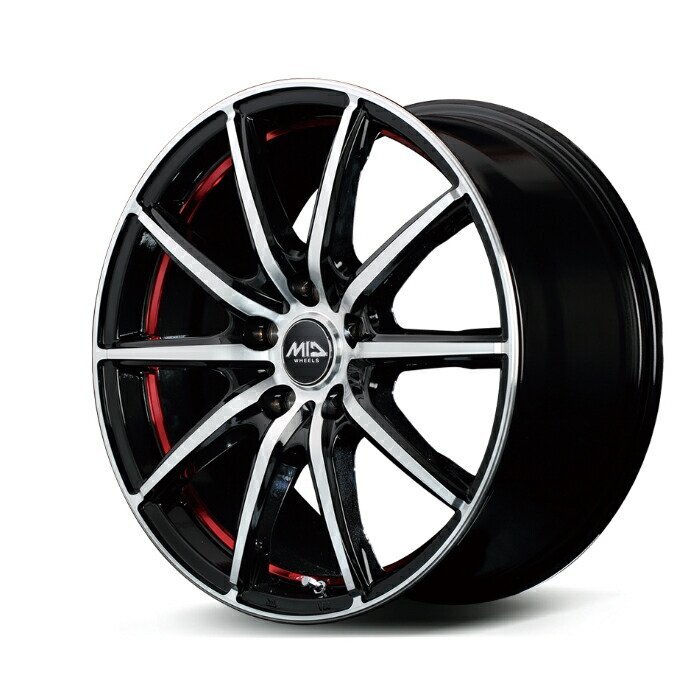 - MID WHEELS SX-2 アルミホイール4本セット 15x5.5J 4H PCD100 +43 (エスエックスツー B4R ブラックポリッシュ+アンダーカットレッドクリ