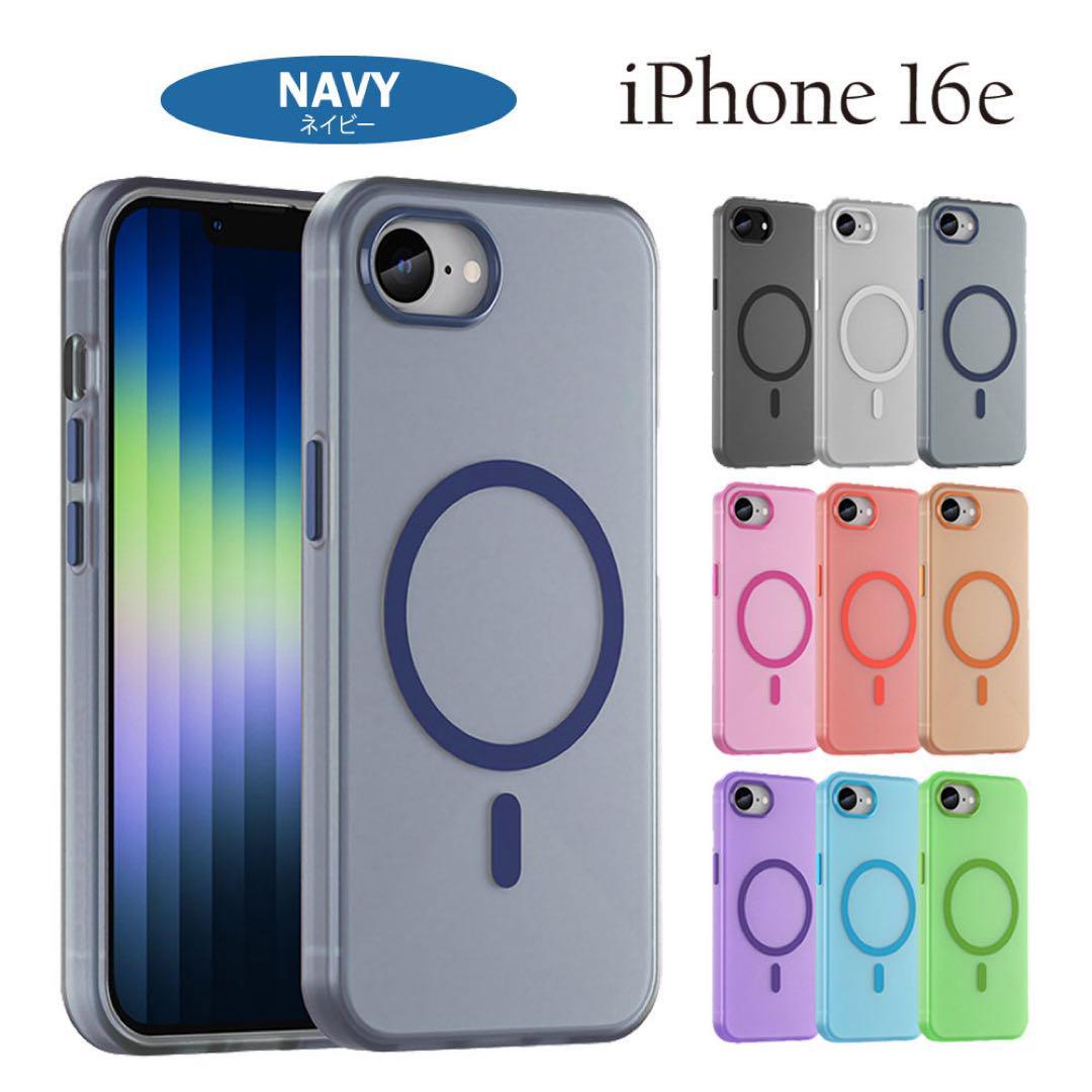 > iPhone16eケース MagSafe充電対応:ネイビー.☆おまけガラスフィルム付