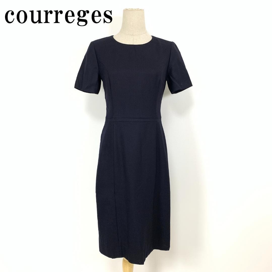 - LA7540 クレージュ courreges ロングワンピース 冠婚葬祭 ウール 半袖ワンピース ネイビー 38
