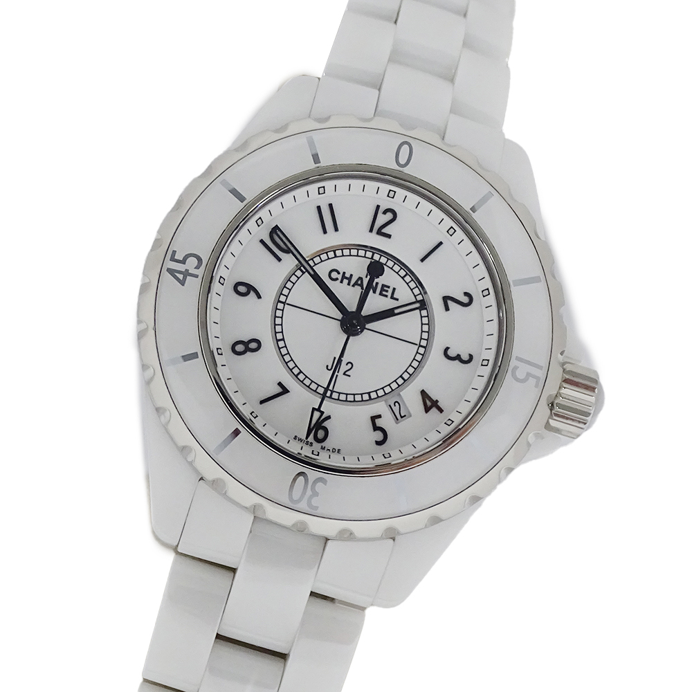 > シャネル CHANEL 時計 レディース ブランド J12 デイト クオーツ QZ ステンレス SS ホワイトセラミック H0968 ホワイト 磨き済み