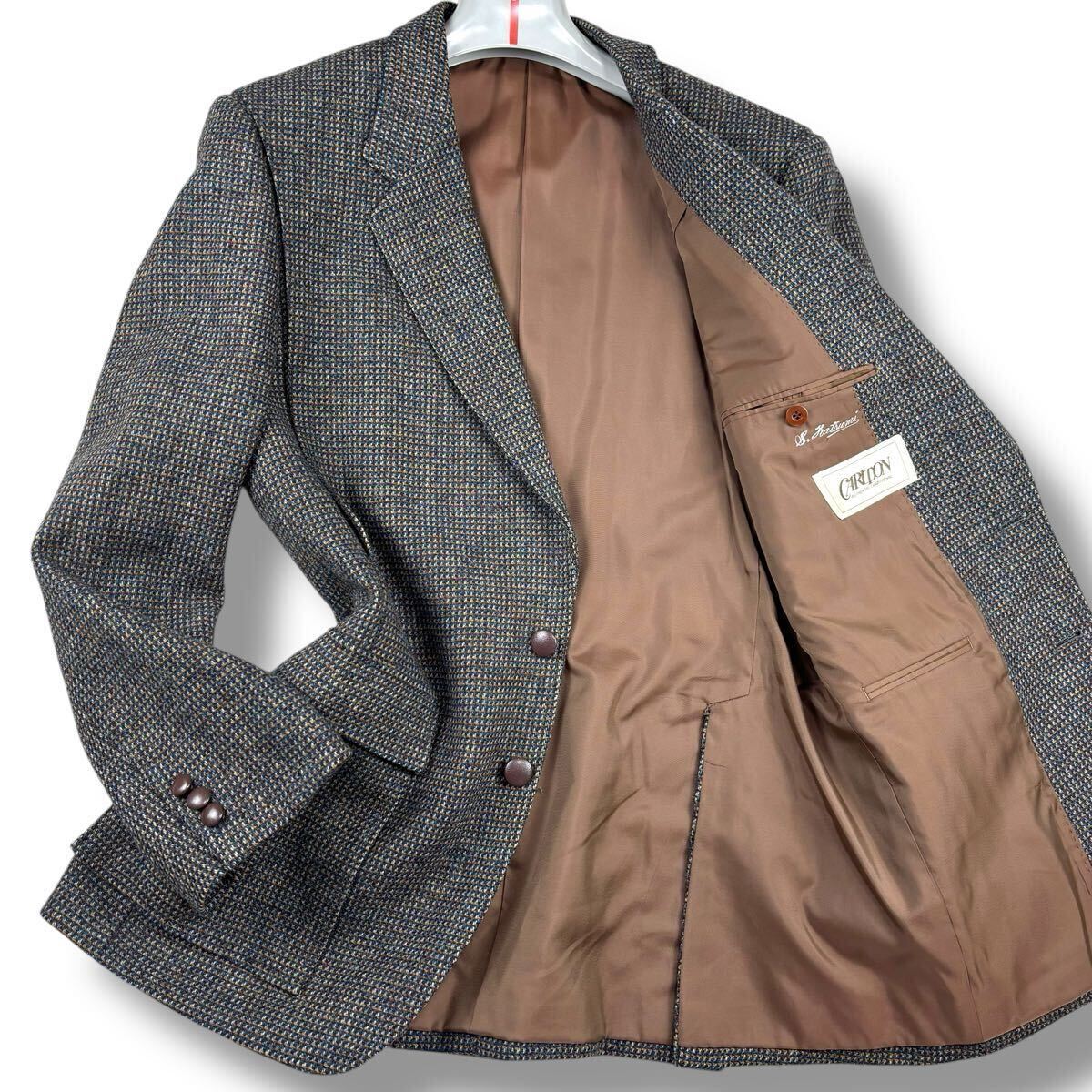 - 1円 美品 L~XL.LL カールトン CARLTON×DRAGOイタリア製生地 ツイード テーラードジャケット 2B バーズアイ調 メンズ グレー 98AB6