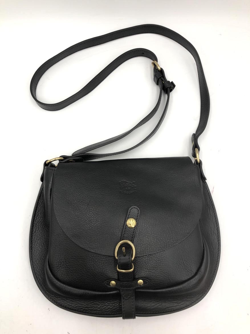 > 美品 IL BISONTE イルビゾンテ GAIA カウハイドレザー クロスボディ ショルダー バッグ 黒 ■■◎ ☆ fja8 レディース
