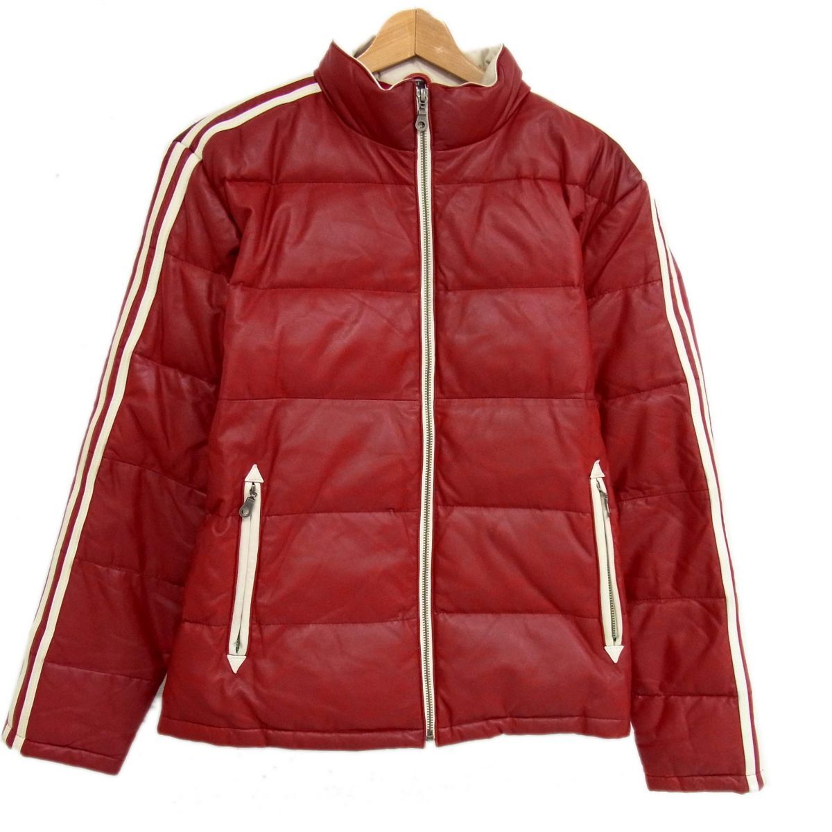 - レアカラー 羽毛 定価8万◇Wind Armor ラムレザー ダウンジャケット ダブルライン ブルゾン ウインドアーマー メンズ レッド