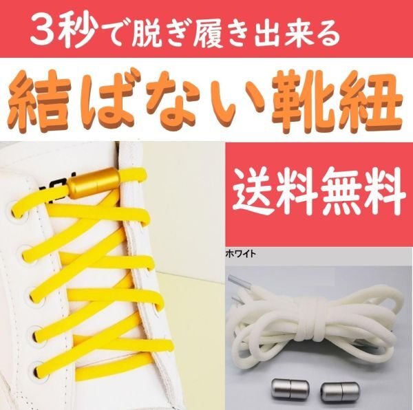 - ☆送料込み☆ 結ばない靴紐 ホワイト ほどけない靴ひも スニーカー おしゃれ 紐 結ばない 伸びる シューレース くつひも 伸縮