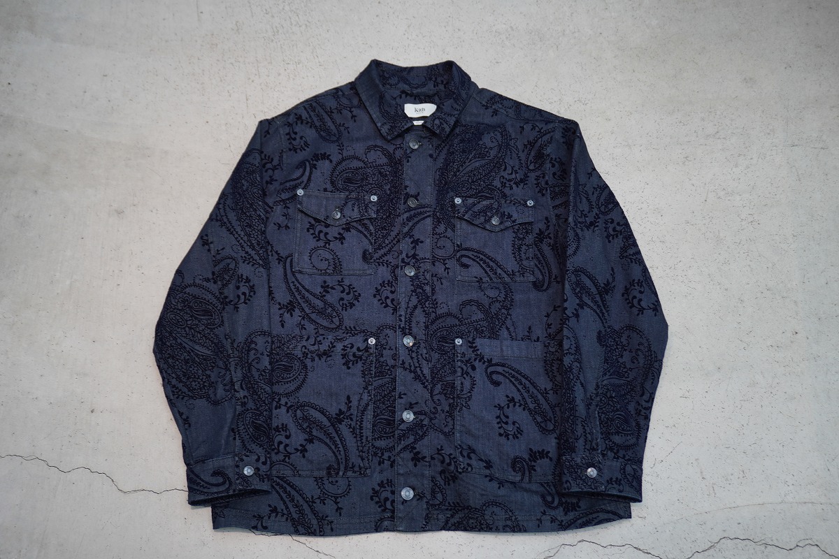 > 正規 美品 KITH DENIM キス デニム 22-011-060-0014 フロッキー ペイズリー 総柄 カバーオール シャツ ジャケット フェルト L 紺 1014P♪
