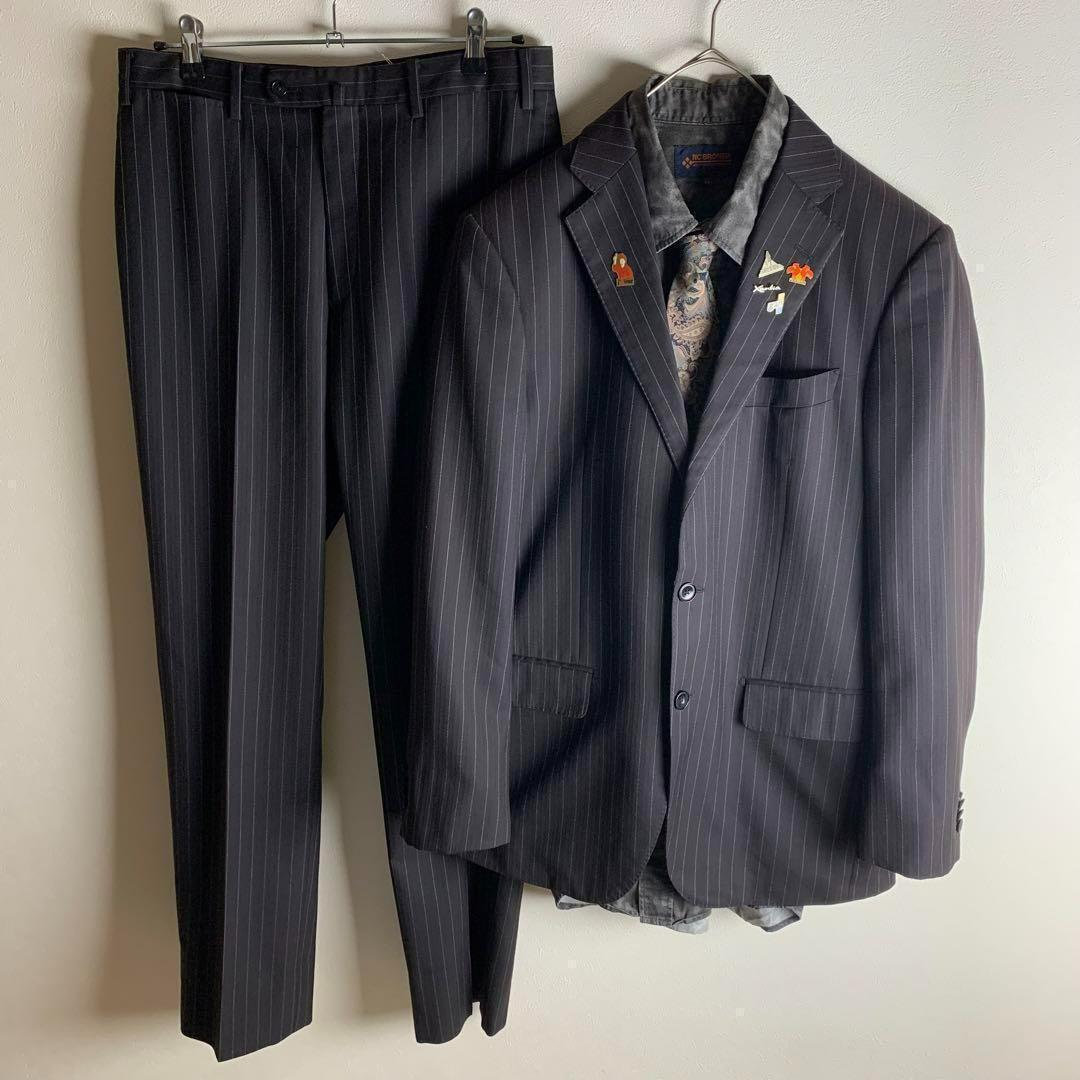 - まとめ売り セットアップ スーツ メンズ ストライプ シングル ピンズ 長袖シャツ マダラ柄 ネクタイ ペイズリー柄 セレモニー ビジネス