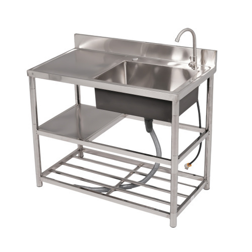 - 【幅100cm】屋外 流し台 ステンレス ガーデンシンク 作業台 キッチン 台所 屋外 簡易 シンク 組み立て簡単 収納棚付 庭 【シルバー KU620