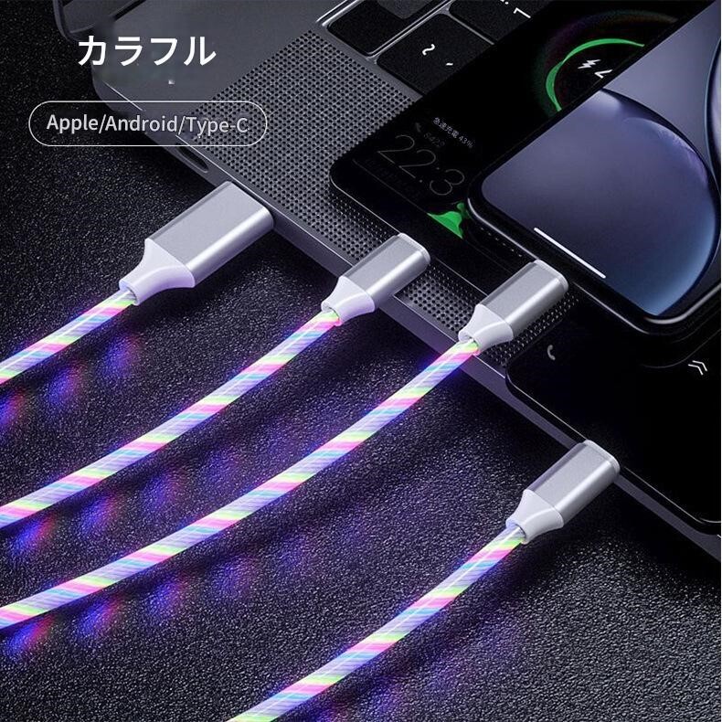 - 3in1 LEDイルミネーション RGB USBケーブル 充電ケーブル 1.2m ① Type-C ② iPhone(Lightning) ③ Micro-USB