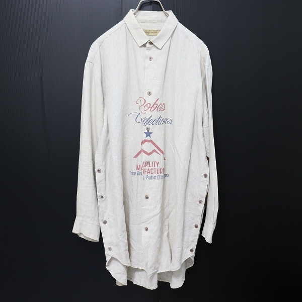 【ブランド】ROBES&CONFECTIONS ローブス&コンフェクションズ 【アイテム】シャツ【表記サイズ】3【平置き実寸】肩幅:約 53cm袖丈:約 61cm身幅:約 67cm着丈:約 94.5cm【状態】やや傷や汚れあり【備考】左袖に凝視程度のごく薄いシミと、袖にほころびがございます(画像参照)【色】生成り色系【素材】画像をご参照ください。★当店の商品はすべてリユースアイテムとなります。特質上、些細なダメージは記載しておりませんので着用に問題のない使用感、着古した雰囲気などはご了承くださいませ。キーワード/アクイール/古着/used/ビンテージ/ヴィンテージ/昭和/レトロ/麻/リネンシャツ