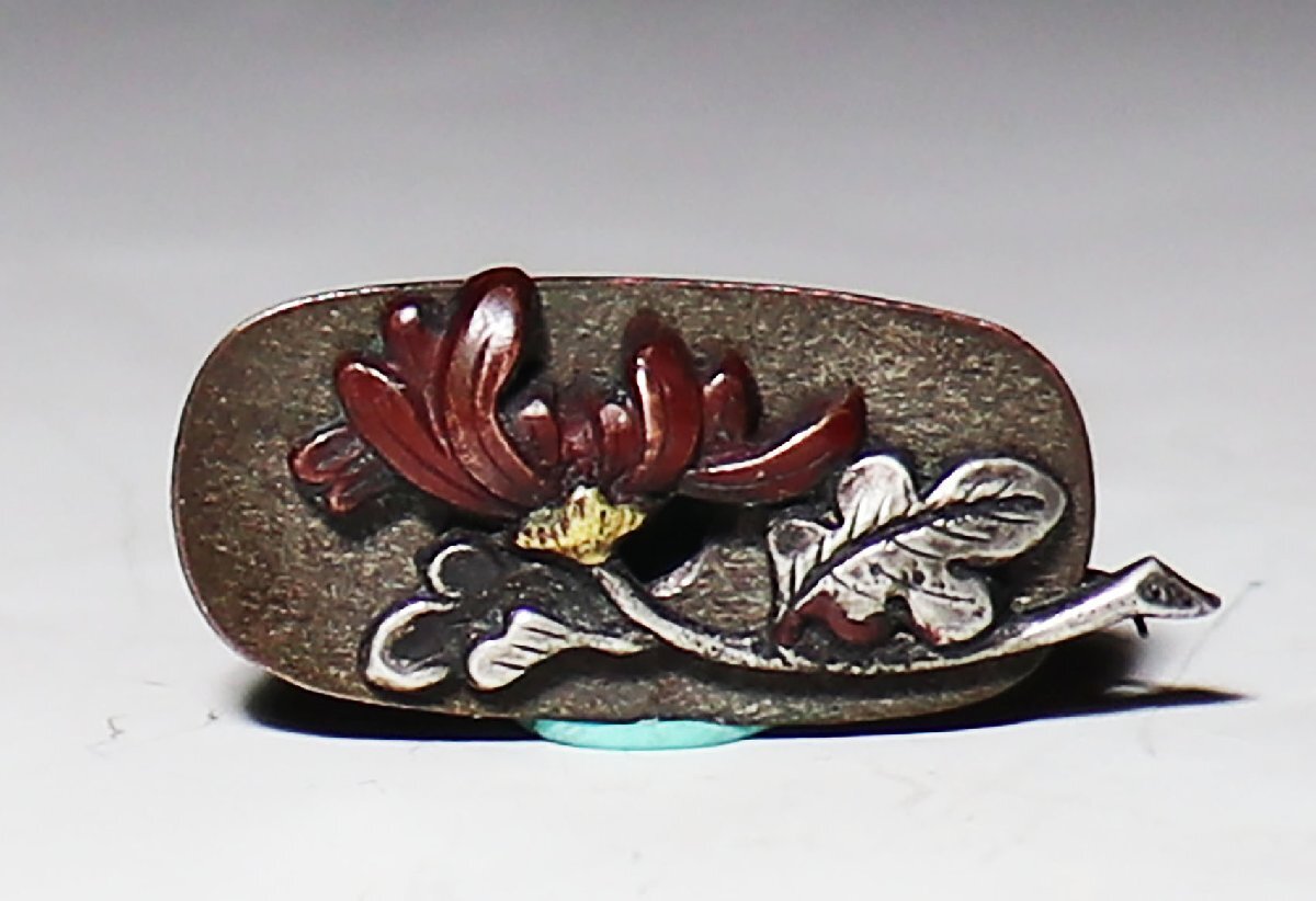 - 【桃】提げ物:金工銀地金赤銅象嵌菊花煙草入れ飾り金具