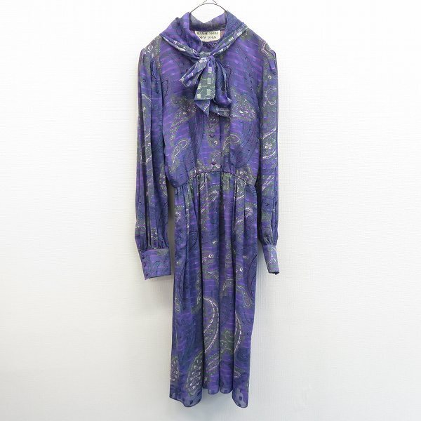 ◎商品名(タイトル):ナエモリ HANAE MORI ヴィンテージ ワンピース ロング ペイズリー 総柄 ボウタイ [a966954]◎ブランド名:ハナエモリ (HANAE MORI)◎アイテム名:ワンピース◎サイズ:◎性別:レディース◎カラー:パープル系 ミックス◎素材:画像をご参照ください◎実寸サイズ:肩幅約 37cm・袖丈約 60.5cm・着丈約 39cm・胸囲約 105cm×2◎商品コメント:★当店の商品はすべてリユースアイテムとなります。特質上、些細なダメージは記載しておりませんので着用に問題のない使用感、着古した雰囲気などはご了承くださいませ。◎コンディションレベル:目立った傷や汚れなし◎コンディション備考:袖に多少の透け感があるお品です。キーワード/アクイール/古着/used/ビンテージ/ヴィンテージ/レトロ/昭和/ロングワンピース/ロングワンピ/森英恵/モリハナエ