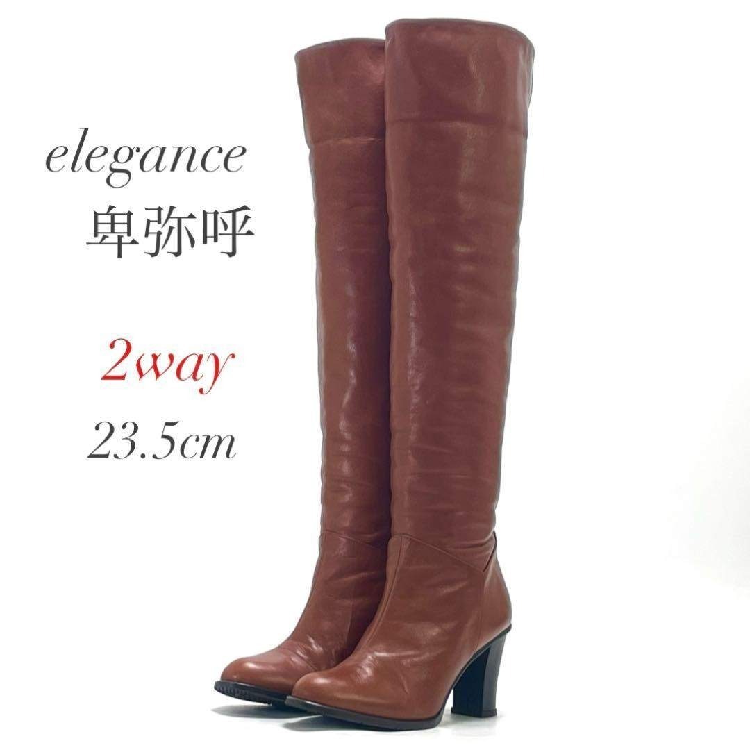 > elegance 卑弥呼 エレガンス ヒミコ 2way ニーハイ ロングブーツ ブラウン 茶色 23.5cm レディース 本革 レザー AQUA GRIPPER 防滑