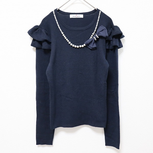 【ブランド】ギャラリービスコンティ GALLERYVISCONTI【アイテム】ニット トップス【表記サイズ】2【平置き実寸】肩幅:約 37cm袖丈:約 57cm身幅:約 40cm着丈:約 49cm【状態】目立った傷汚れなし【備考】リボンは取り外しが可能となっております。【色】ネイビー系 紺系【素材】画像をご参照ください。当店の商品はすべてリユースアイテムとなります。特質上、些細なダメージは記載しておりませんので着用に問題のない使用感、着古した雰囲気などはご了承くださいませ。キーワード/アクイール/古着/used/ビンテージ/ヴィンテージ/昭和/レトロ/ビスコンティ/バレエコア/リボンコーデ
