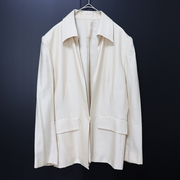 【ブランド】ランチェッティ LANCETTI【アイテム】ジャケット テーラード【表記サイズ】42【平置き実寸】肩幅:約 41.5cm袖丈:約 57cm身幅:約 50cm着丈:約 63cm【状態】やや傷や汚れあり【備考】各所に薄い点シミがございます(画像4、5参照)【色】薄いベージュ系【素材】画像をご参照ください。★当店の商品はすべてリユースアイテムとなります。特質上、些細なダメージは記載しておりませんので着用に問題のない使用感、着古した雰囲気などはご了承くださいませ。キーワード/アクイール/古着/used/ビンテージ/ヴィンテージ/昭和/レトロ/テーラードジャケット/イトキン/シルク/絹