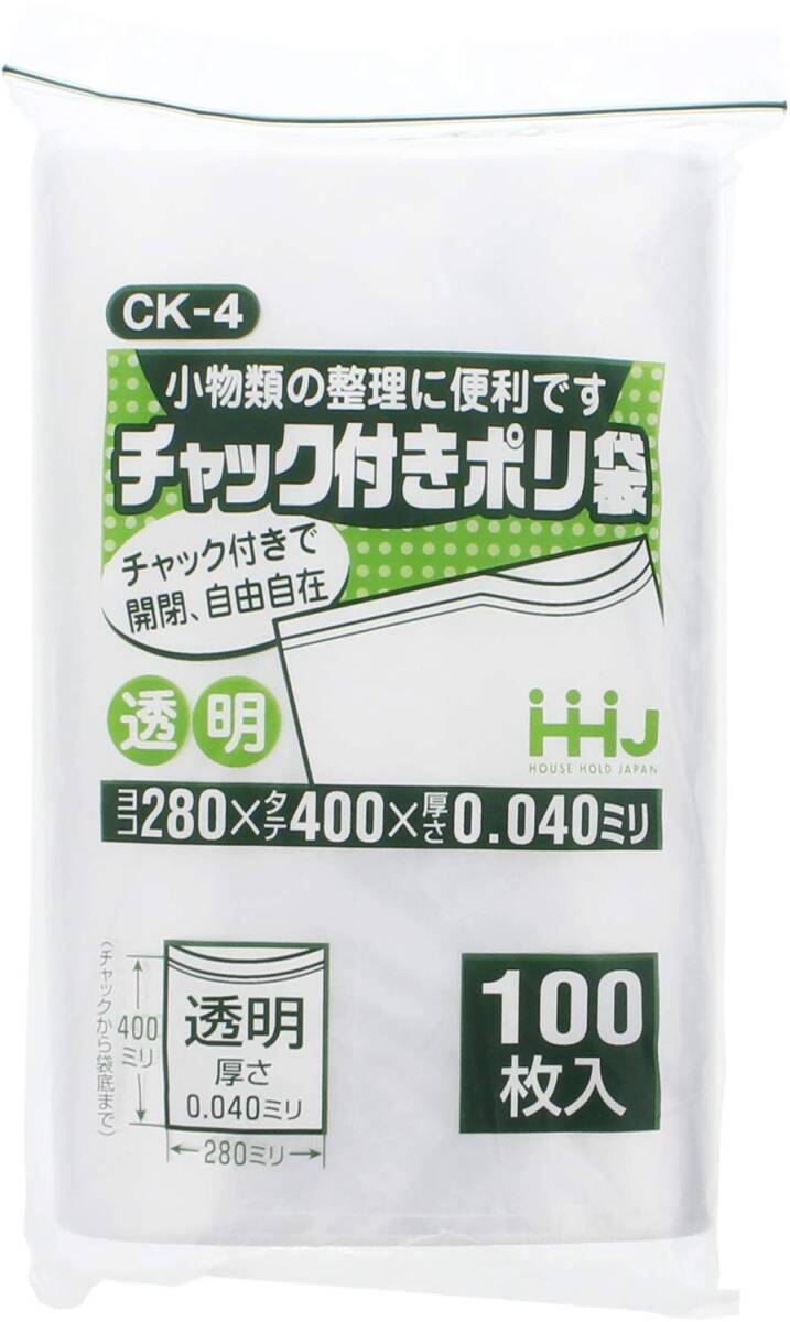 - ハウスホールドジャパン チャック付き ポリ袋 28×40cm 0.04mm 厚 100枚入 CK4