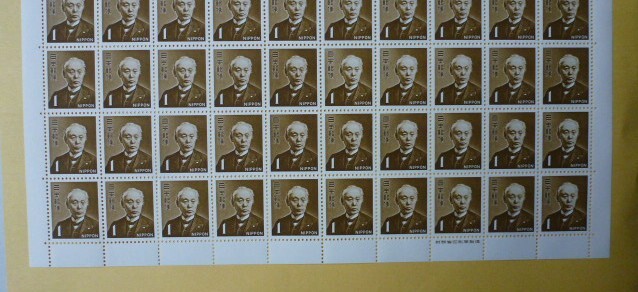 - 財務省銘より 1円 前島密 カラーマーク上 100枚シート 未使用 完美品 大A-4-8s