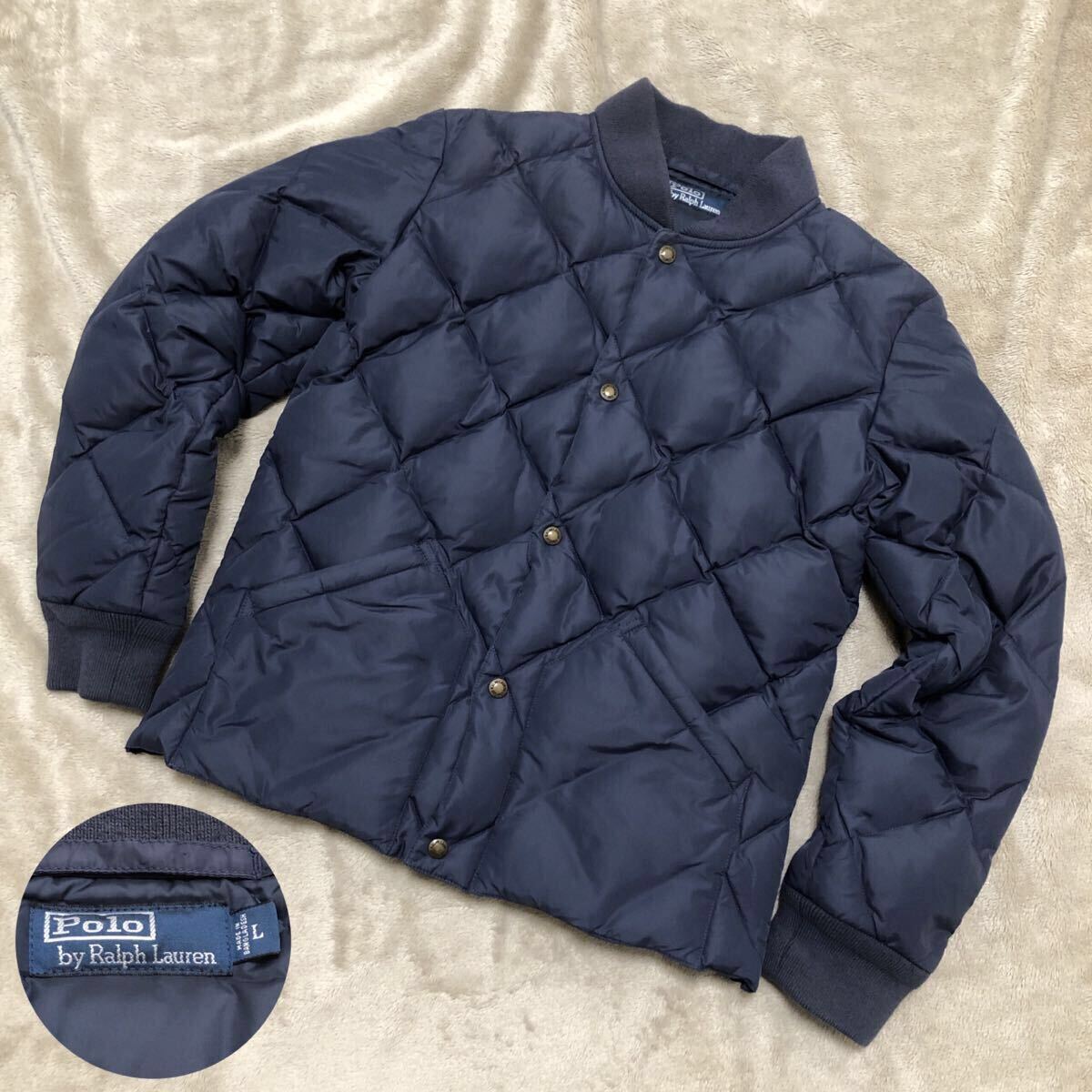 > 希少★Polo by Ralph Lauren ポロバイラルフローレン ダウンジャケット 紺 L キルティング スカイライナー インパクト21