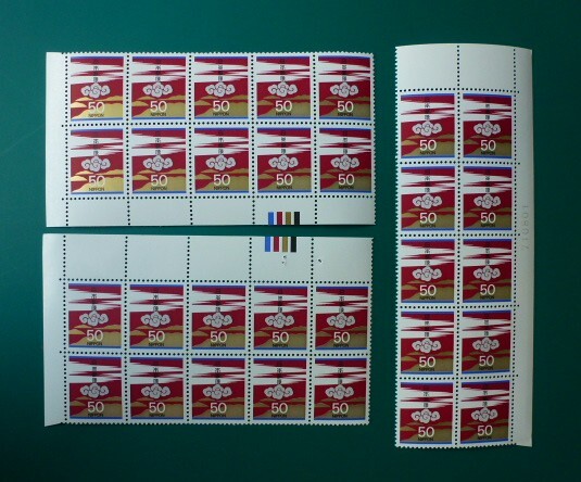 - 大蔵銘版より 50円 宝雲 カラーマーク上と下と計数 各10枚ブロック 未使用 完美品 K-18-7s
