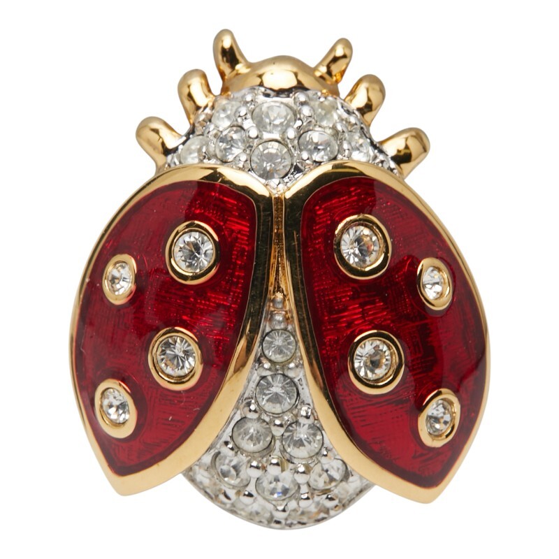 > スワロフスキー てんとう虫 ラインストーン ブローチ ゴールド レッド メッキ レディース SWAROVSKI 【中古】
