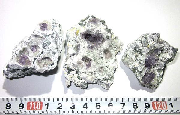 - 日本の鉱物 福島県只見町の球顆流紋岩中のアメジスト /「かぐや姫水晶」3個セット約156g