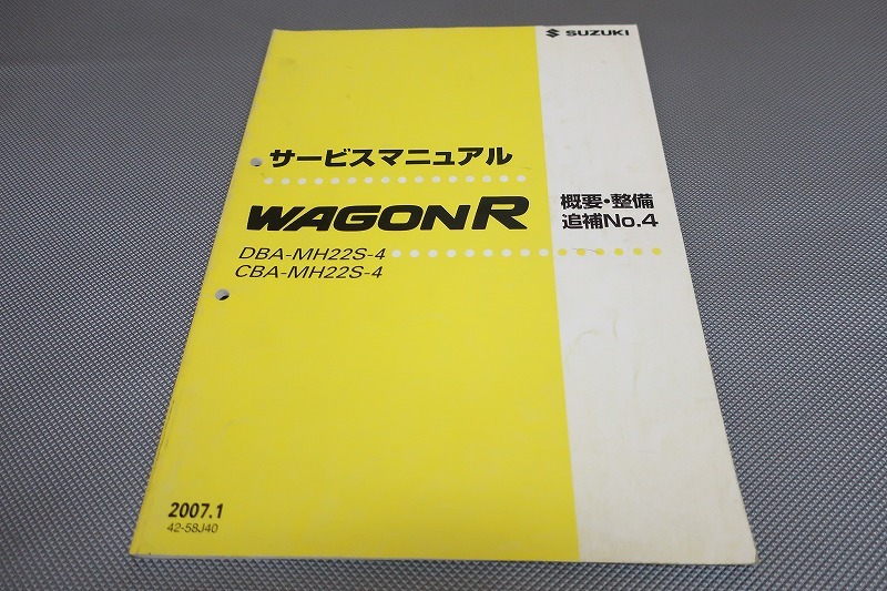 > 即決!ワゴンR/スティングレイ/ターボ/サービスマニュアル/概要・整備/追補No.4/MH22S-4/wagonアール/(検索:メンテナンス/整備書/修理書)