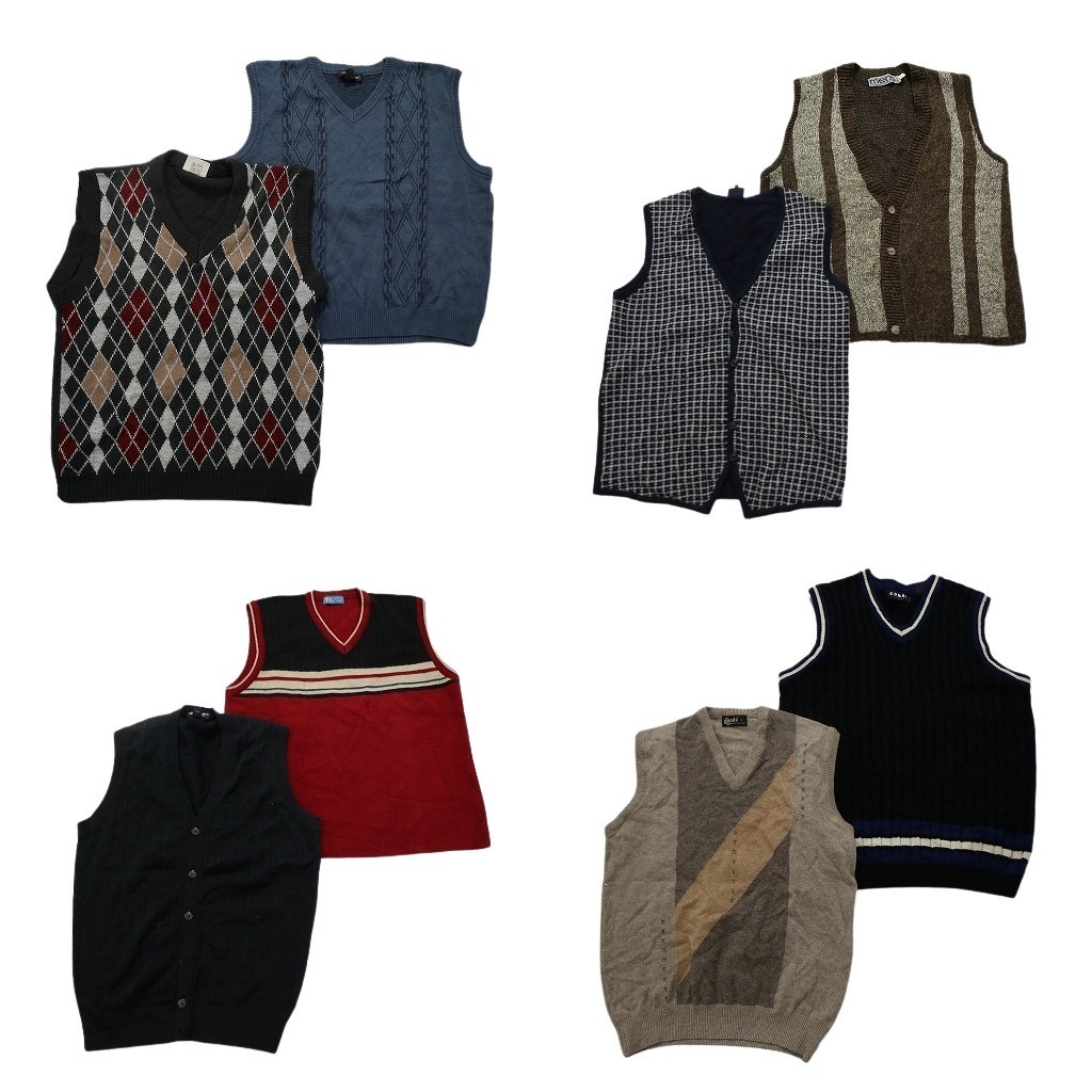 > 古着卸 まとめ売り ニットベスト セーター 8枚セット (メンズ M ) アーガイル柄 ライン カーディガン 無地 中古 古着 NC3024 1円スタート