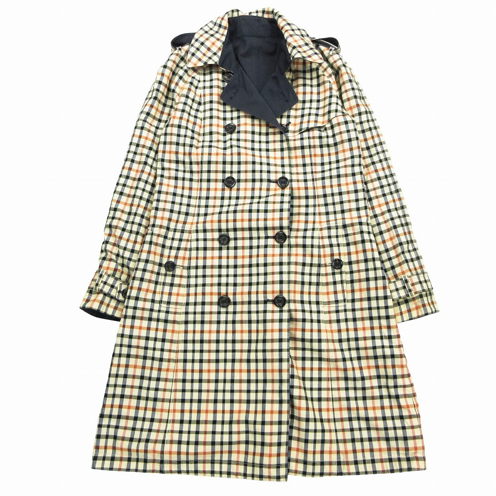 > DAKS ダックス ハウスチェック柄 トレンチコート リバーシブル ジャケット サイズUK10 M ベージュ ネイビー レディース 【中古】