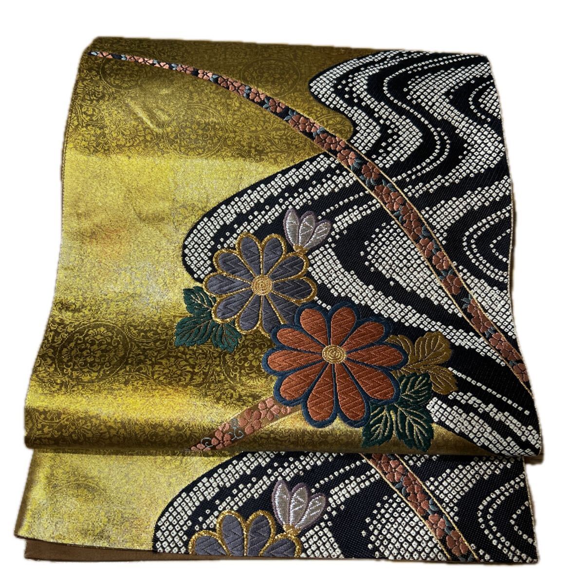 - 袋帯●おび●高級●帯丈430cm 幅31㎝ 豪華絢爛 金糸 三十六歌仙 刺繍 花紋 菊 波 桜●和装小物*着物*レトロ*アンティーク●フォーマル