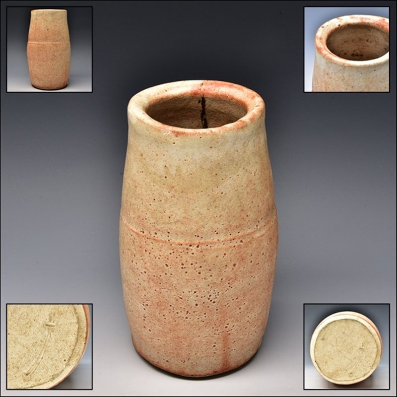 - U08788 藤原敬介 恭助 備前 志野 花入 花生 花器 花瓶 壺 筒花入 茶道具