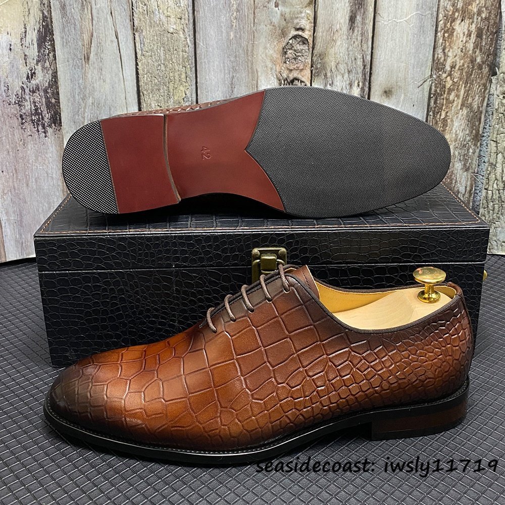 - 超希少◆ビジネスシューズ 鰐柄 本革 レザーシューズ ビジネスシューズ 職人手塗り上げ フォーマル 上級牛革 革靴 紳士靴 ブラウン 27.0cm