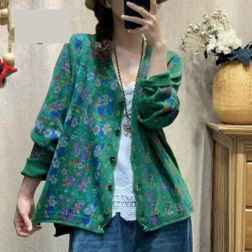 - 新入荷カーディガン アウター 羽織物 トップス チュニック ゆったり 綿100% ナチュラル 花柄 Vネック