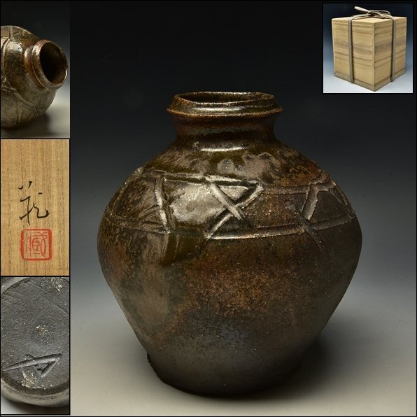 - SP6338 守田蔵 黒 信楽 蹲 うずくまる 壺 花器 共箱 検 白洲正子