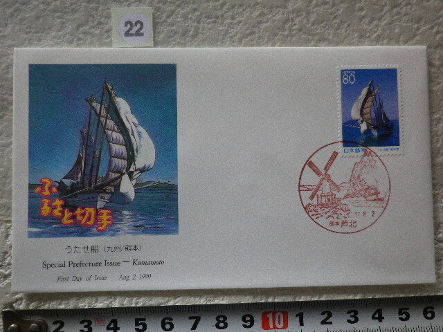 - FDC ふるさと切手 うたせ船・熊本 1999年 解説書有●22●同梱大歓迎