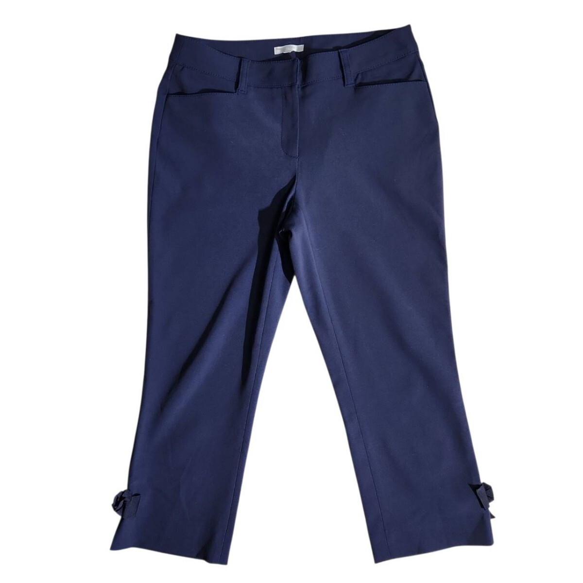 - TO BE CHIC シャリ感 ストレッチ素材 アンクル丈パンツ ダークネイビー 表記サイズ38 M 裾リボン飾り 84935