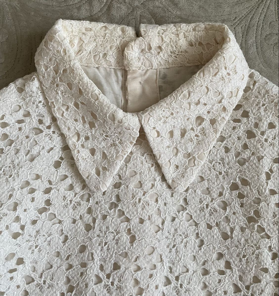 - martinique マルティニーク 総レース ブラウス 花柄 八分袖 綿 コットン アイボリー バックボタン 日本製 メルローズ