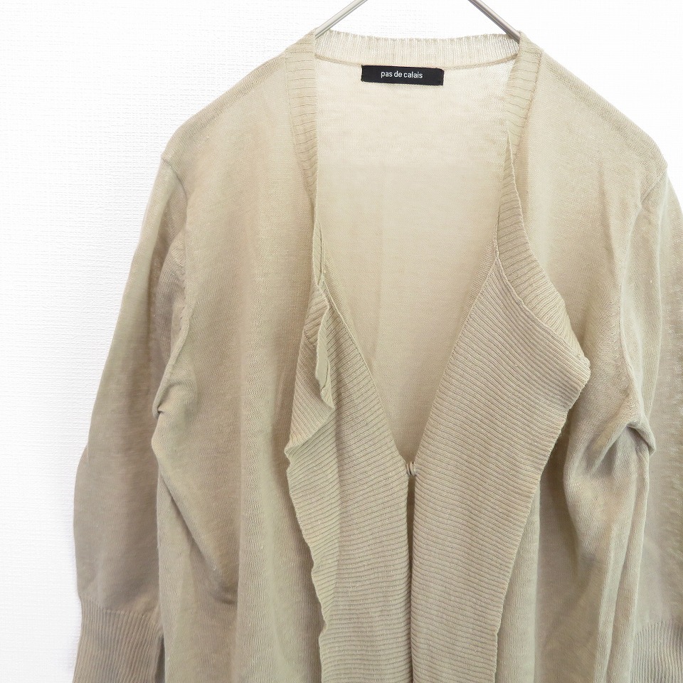 【ブランド】パドカレ pasdecalais 【アイテム】カーディガン【表記サイズ】S【平置き実寸】肩幅:約 38cm袖丈:約 42cm着丈:約 55cm身幅:約 49cm【状態】目立った傷汚れなし【備考】-【色】ベージュ系【素材】画像をご参照くださいキーワード/アクイール/古着/used/ビンテージ/ヴィンテージ/羽織り/フリル/麻/7分袖/